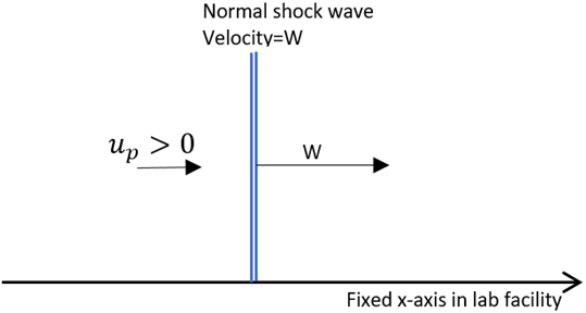 Explanation : When the normal shock wave is not opposed to the flow velocity, it propagates with some velocity W into the laboratory facility. This leads to the induction of gas behind it to move in the wave direction.