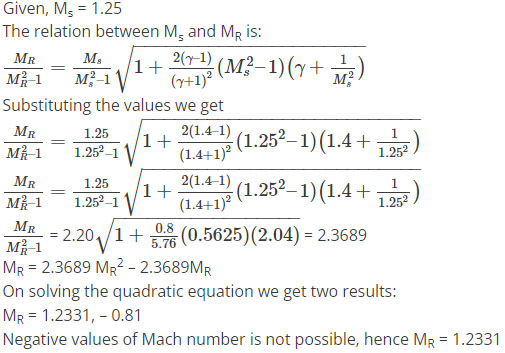 Explaination : Continuity equation across a shock wave is given by the formulaρ1u1 = ρ2u2Where, subscripts 1 and 2 are the sections behind and ahead of the shock wave. This above formula is valid only for stationary wave. For a reflected unsteady shock wave, the velocity ahead of the shock relative to wave is WR + up and the velocity behind the shock relative to the wave is WR. Thus, the continuity equation becomes:ρ2(WR + up) = ρ5WR