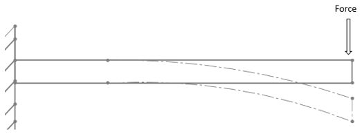 Explaination : The above diagram is showing a typical bending concept. Bending as shown in the diagram is a combination of tension and compression. As shown in the diagram top portion is experiencing compression. Bottom portion is experiencing tension as seen in the diagram.