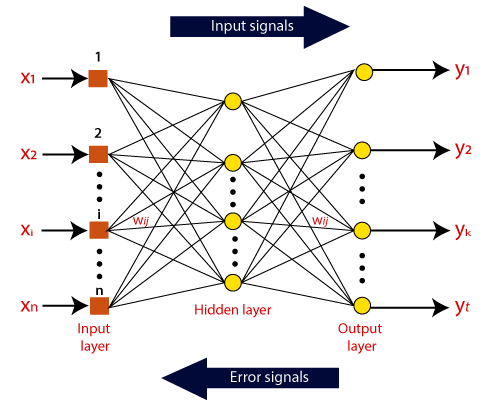 | Information from other neurons, in the form of electrical impulses, enters the dendrites at connection points called synapses. The information flows from the dendrites to the cell where it is processed. The output signal, a train of impulses, is then sent down the axon to the synapse of other neurons. | The arrangements and connections of the neurons made up the network and have three layers. The first layer is called the input layer and is the only layer exposed to external signals. The input layer transmits signals to the neurons in the next layer, which is called a hidden layer. The hidden layer extracts relevant features or patterns from the received signals. Those features or patterns that are considered important are then directed to the output layer, which is the final layer of the network. |