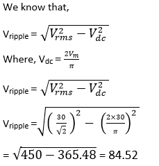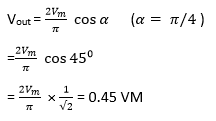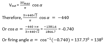 Explaination : EMF of a solar cell = 450 VDC current Idc = 10 AResistance of solar cell, Rcell = 1 ?We know that, Voltage across the inverter = output voltage of the solar cell,Vout = -(450 - 10 × 1) = -440 VFor three phase controlled bridge