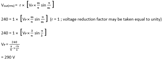 Explanation : The peak value for 120° mode is Vs. The line voltage waveform is a sine wave with a peak value of Vs ( = supply voltage).